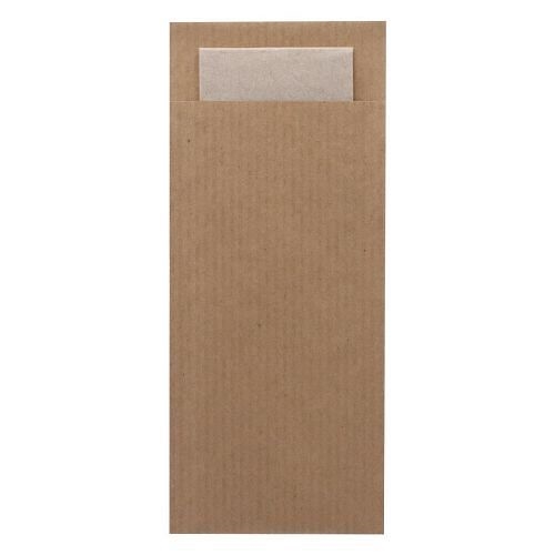 Europochette Classic Size Kraft Brown Cutlery Pouch with Kraft 2ply Napkin (500 pack)