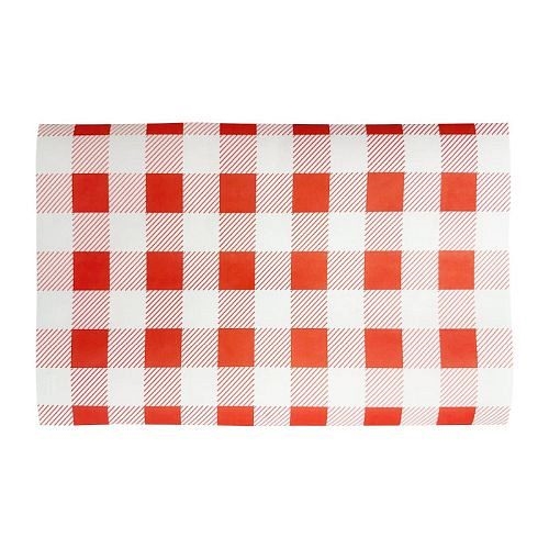Give your food presentation that extra bit of flare. These Fiesta Compostable red gingham greaseproof paper sheets add a classic look to your burgers, chips and other fried food. Their grease-resistant material prevents messy oil from soaking through, keeping your customers' hands and serving platters clean.