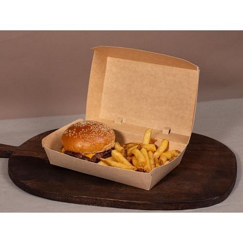 Looking for a plastic-free option for your takeaway, food-to-go business? These clamshell hinged meal boxes from Notpla are ideal. Stackable by design, they're perfect for quick takeaway service, serving everything from burgers and chips to jacket potatoes, salads, and pasta bakes. They are crafted from 100% natural materials and can be composted at home in just six weeks, breaking down into healthy soil instead of creating waste. A leakproof seaweed coating prevents spills, whether the contents are hot, cold, wet or dry. The durable construction also helps keep food fresh and secure during transport, ensuring the contents arrive in the best possible condition.